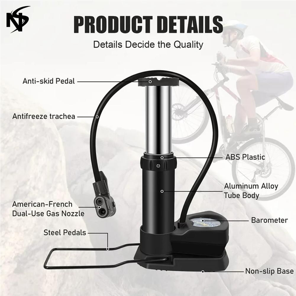 - Versatile Inflation: Portable mini foot air pump designed for bikes, balloons, footballs, swimming pools, and cars.