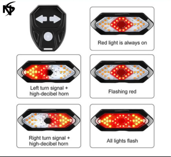 - 5 Light Modes: Red Light--Flashing red light--Left turn signal--Right turn signal--All flashing