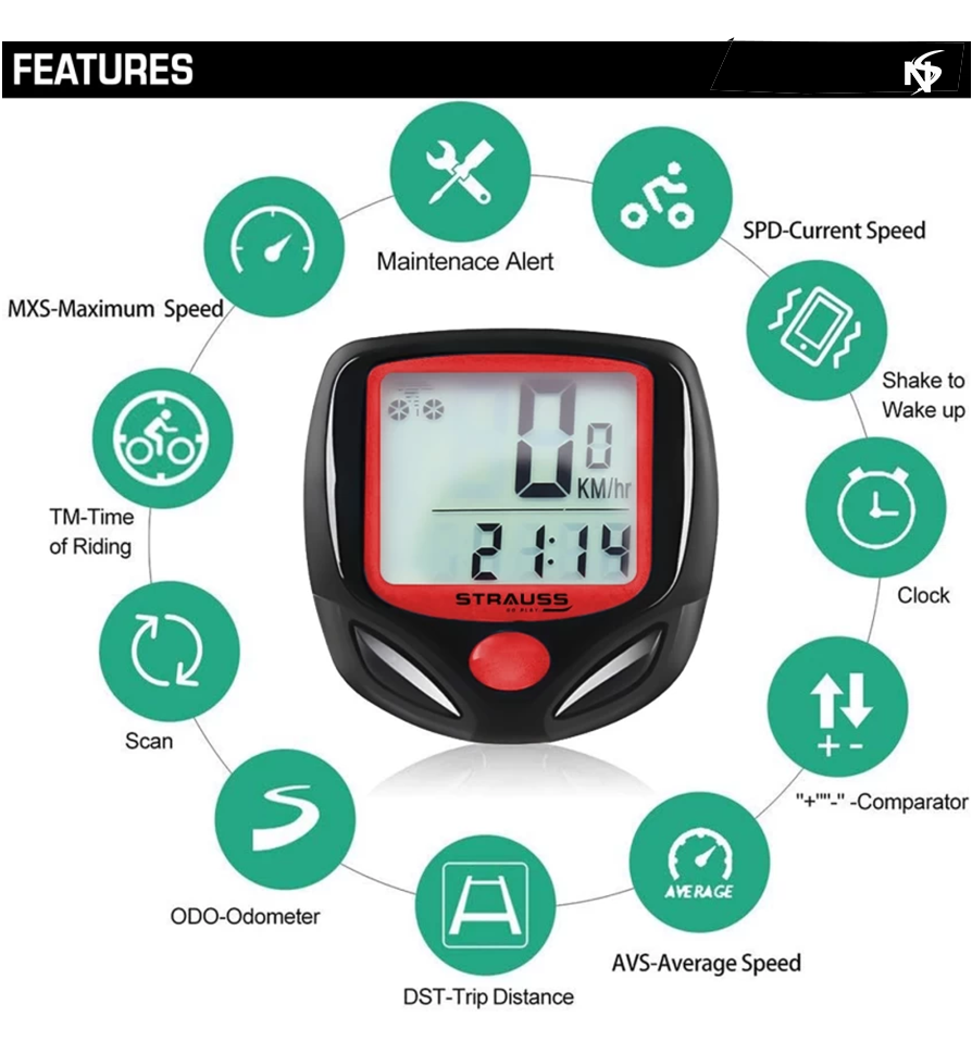 - Monitor your bikes speed, distance and riding time.