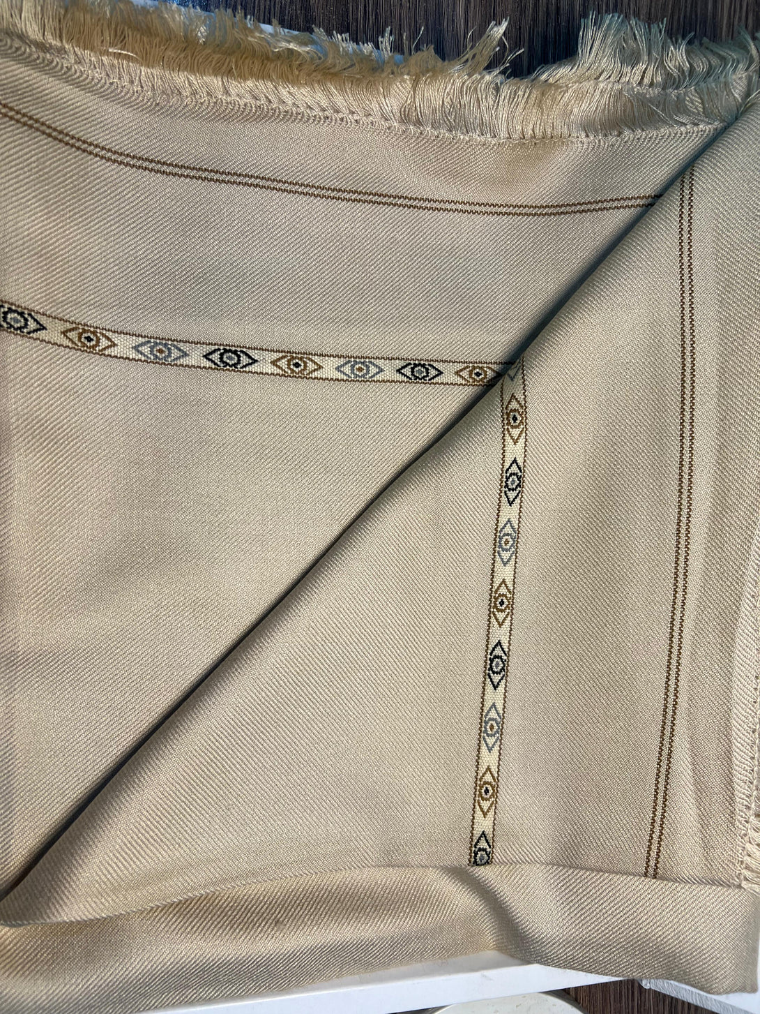 Wear it with confidence — this shawl reflects Noor’s signature craftsmanship and understated luxury.